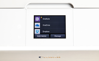 Experience a touch of class with simple and intuitive fingertip control. A large touch panel with 8.8 cm colour touch screen makes it quick and easy to navigate menus, select functions, preview images and use cloud services.*SlideShare is a trademark of SlideShare, Inc.**Scan to cloud and scan to email only available for genuine Canon ink users