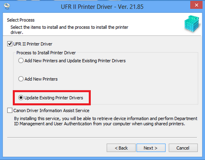 In both cases new installation and updating installation, if more than one Canon PDL drivers exist on the server, all their packages might be downloaded.