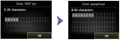 4. One of the screens below will be displayed on the printer, depending on which security method your access point is using.