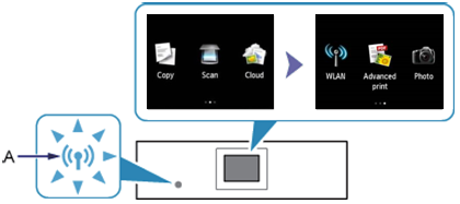 The blue Wi-Fi lamp on the printer flashes while searching for or connecting to the access point.