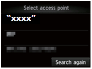 3. Tap the name (or SSID) of your wireless network from the list [Select access point] displayed on the printer’s LCD.