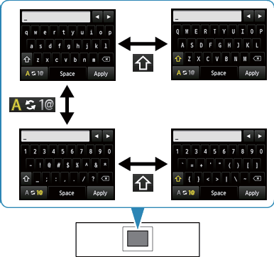 You can enter characters when the keyboard is displayed on the printer. Follow the procedure below.