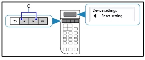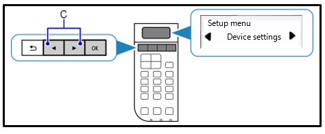 - Use the arrow button (C) to select [Device settings] and press the [OK] button.