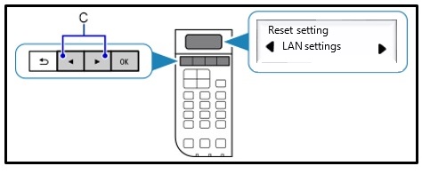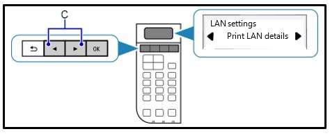 - Use the arrow button (C) to select [Print LAN details] and press the [OK] button.