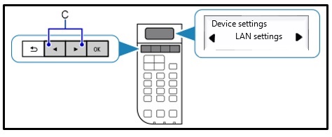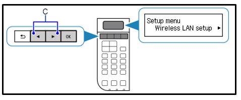 - Use the arrow buttons (C) to select [Wireless LAN setup] and press the [OK] button.