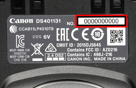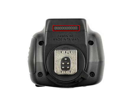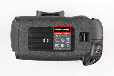 The location of your serial number varies between different Canon products. The serial number is a combination of numbers and/or letters, without spaces or special characters. Please ignore any numbers or letters that appear in brackets.