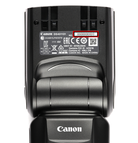 The serial number can be found in the following locations depending on the age of the Speedlite